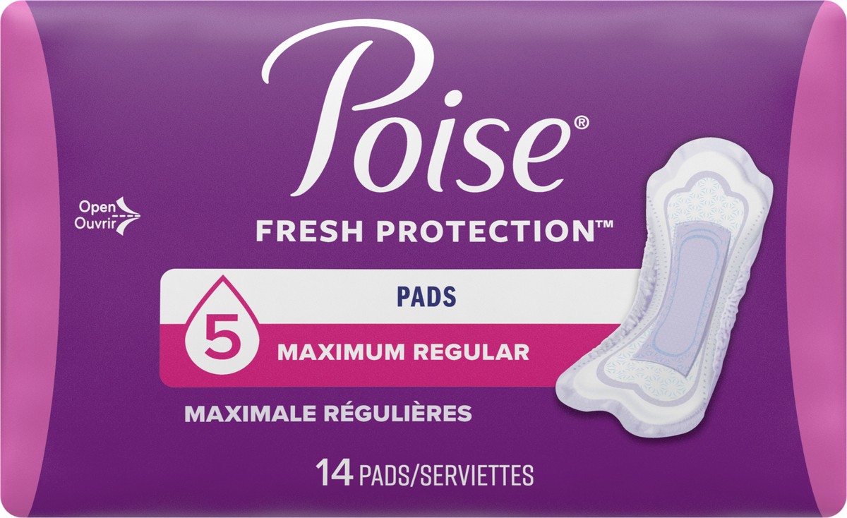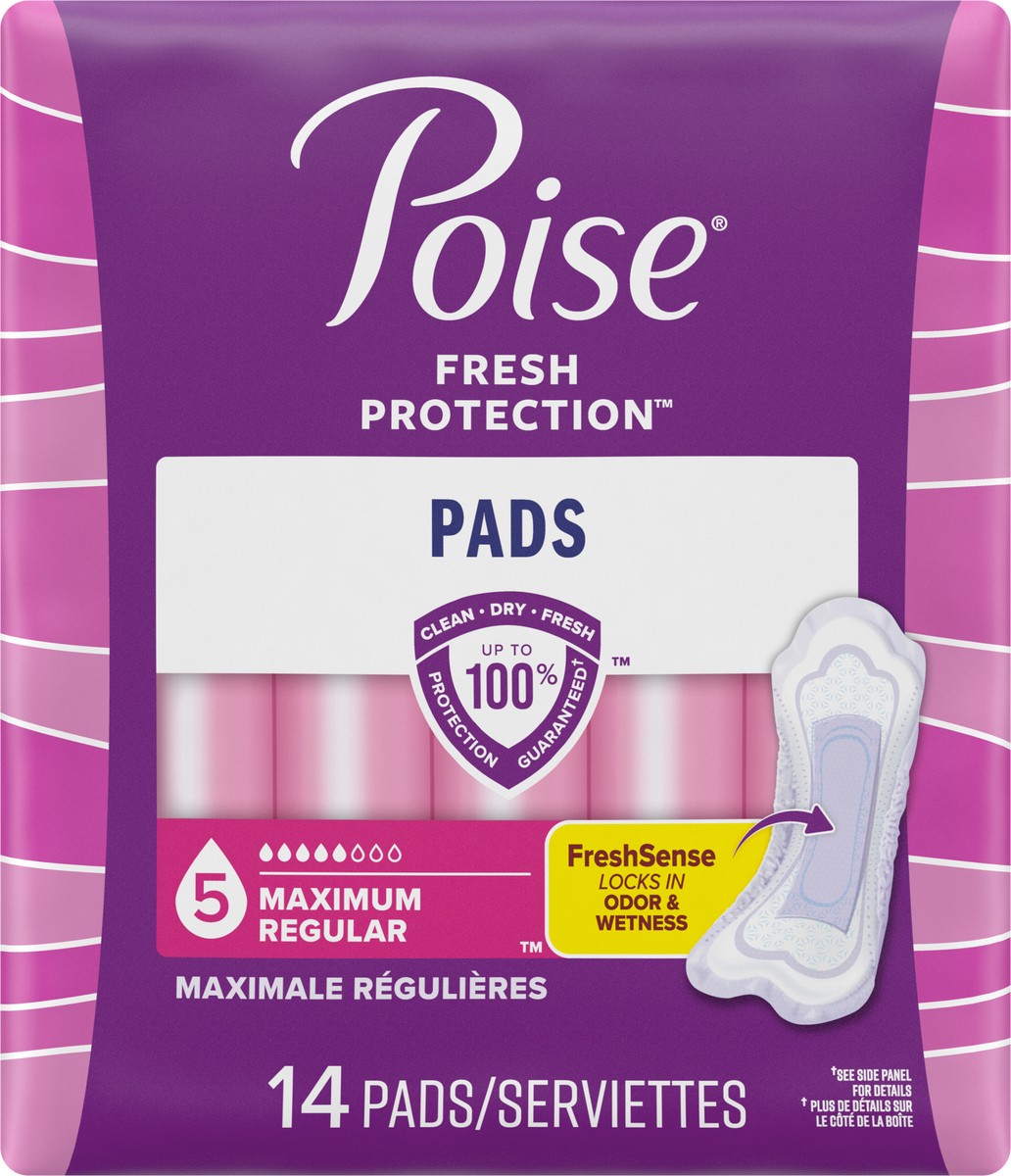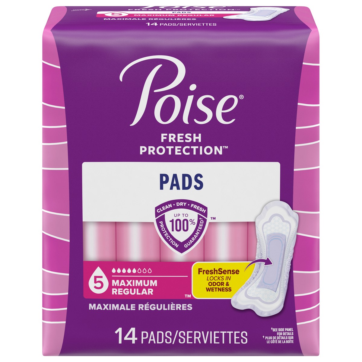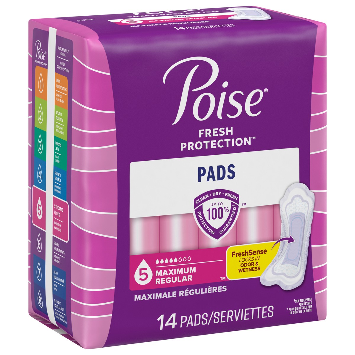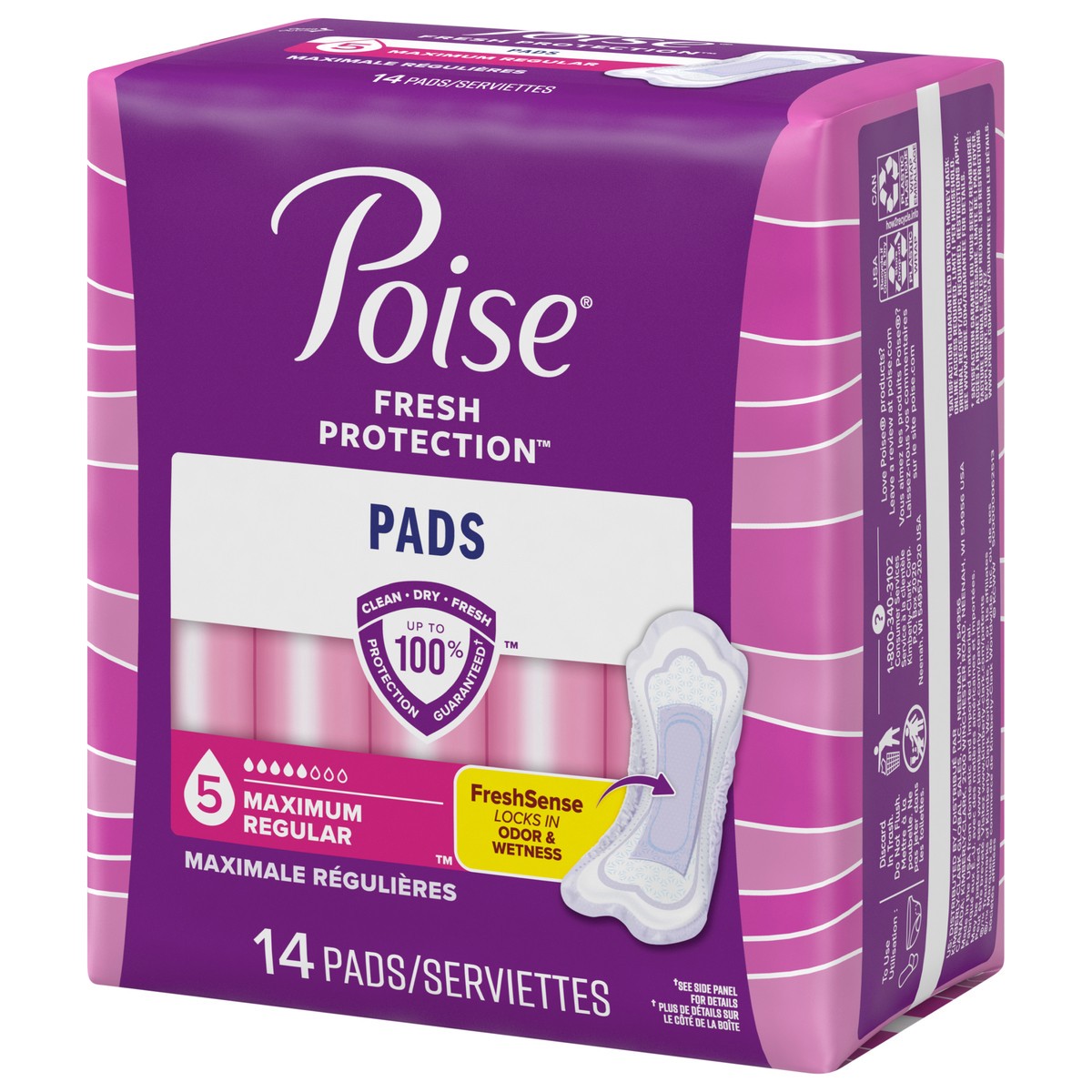 - NEW Maximum Absorbency 5 Drop: Poise Postpartum Incontinence Pads, Maximum Absorbency, Regular Length 14 pads; HSA/FSA-eligible in the U.S. (packaging may vary).