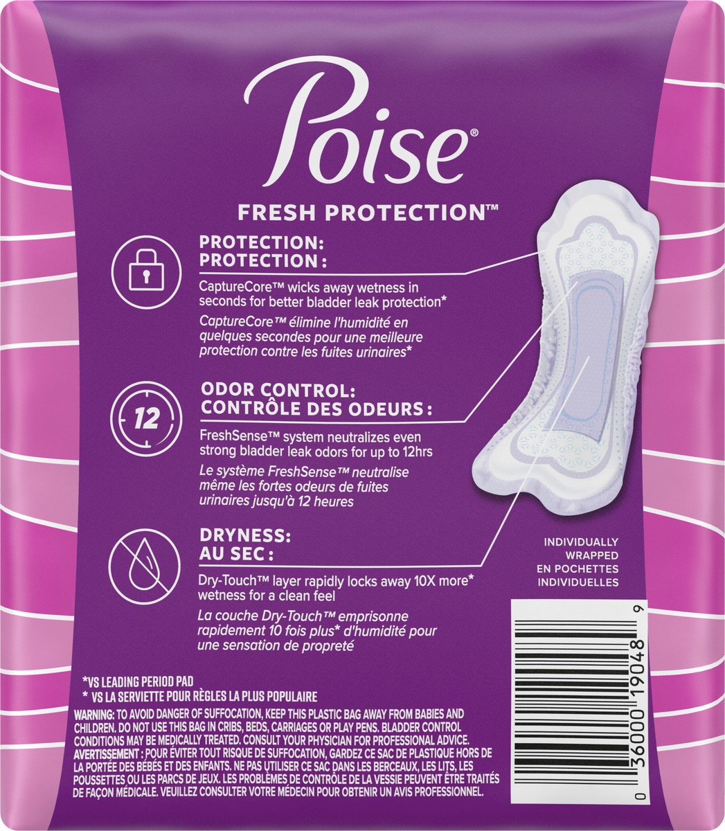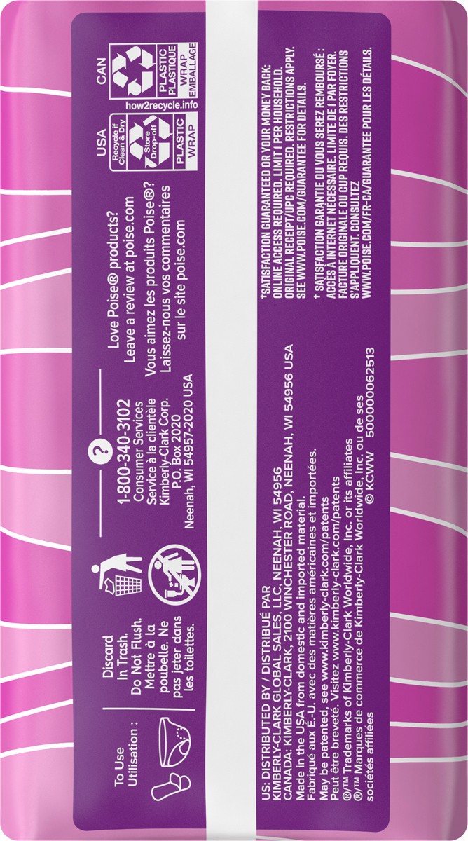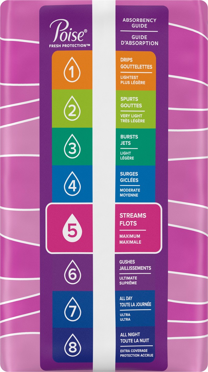 - Odor Control: always wear Poise discreetly and confidently knowing it instantly locks away wetness and odor.