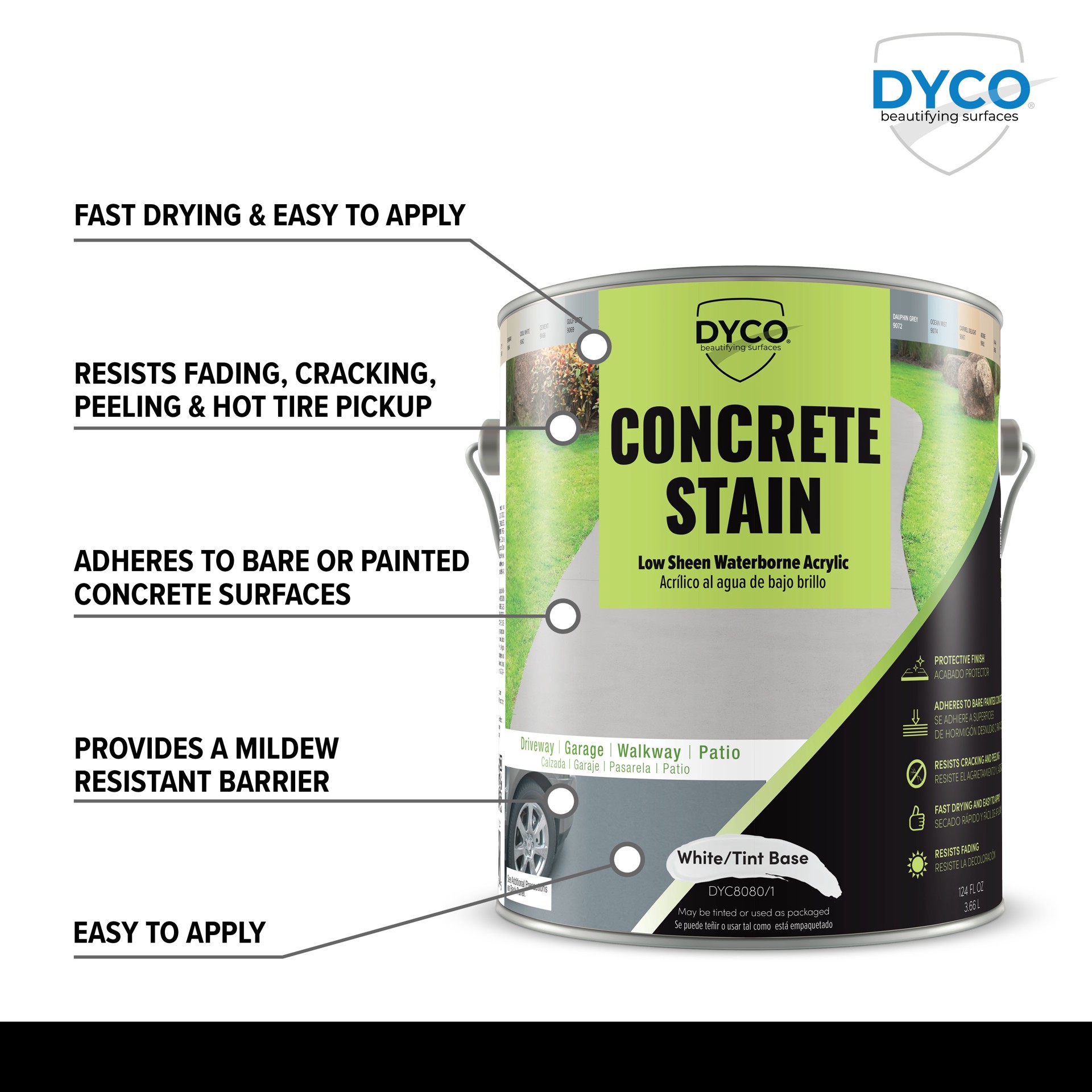 CONCRETE STAIN AND SEALER: Get a beautiful low sheen and hard protective finish on your concrete surfaces with Dyco Concrete Stain Tint Base Low Sheen Waterborne Acrylic.. FINISH YOUR SPACES: Dyco Con…