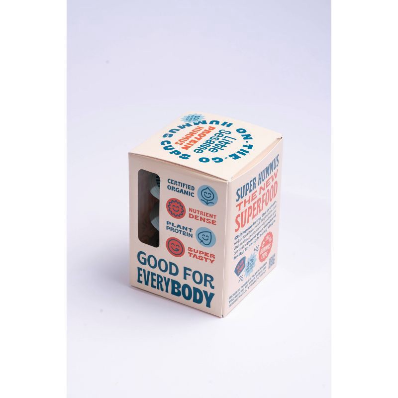 Cooked Organic Chickpeas, Water, Organic Pea Protein, Organic Tahini (Organic Sesame Seeds), Organic Sunflower Oil, Organic Fresh Lemon Juice, Organic Extra Virgin Olive Oil, Organic Garlic, Sea Salt