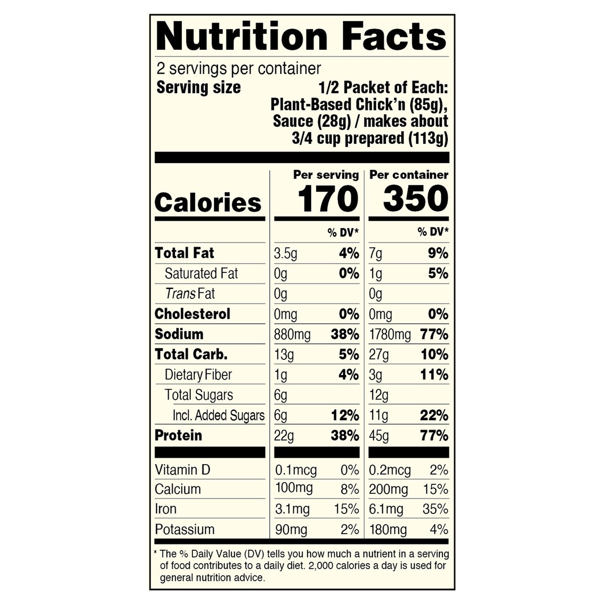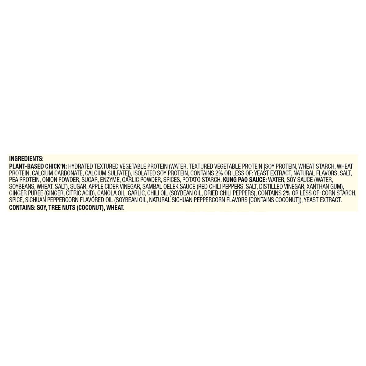 Plant-Based Chick''n: Hydrated Textured Vegetable Protein (Water, Textured Vegetable Protein [Soy Protein, Wheat Starch, Wheat Protein, Calcium Carbonate, Calcium Sulfate]), Isolated Soy Protein, Cont…