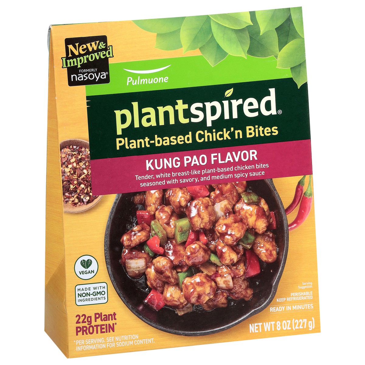 Nasoya Plantspired Plant-Based Kung Pao Chicken Bites are conveniently sauced and seasoned with authentic and top trending Asian flavors. Ready to heat and enjoy in an elevated package. Premium, plant…