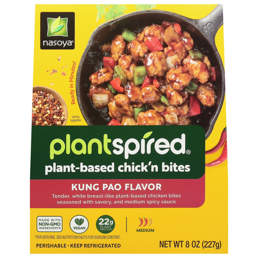 Nasoya Plantspired Plant-Based Kung Pao Chicken Bites are conveniently sauced and seasoned with authentic and top trending Asian flavors. Ready to heat and enjoy in an elevated package. Premium, plant…