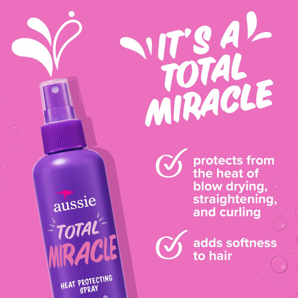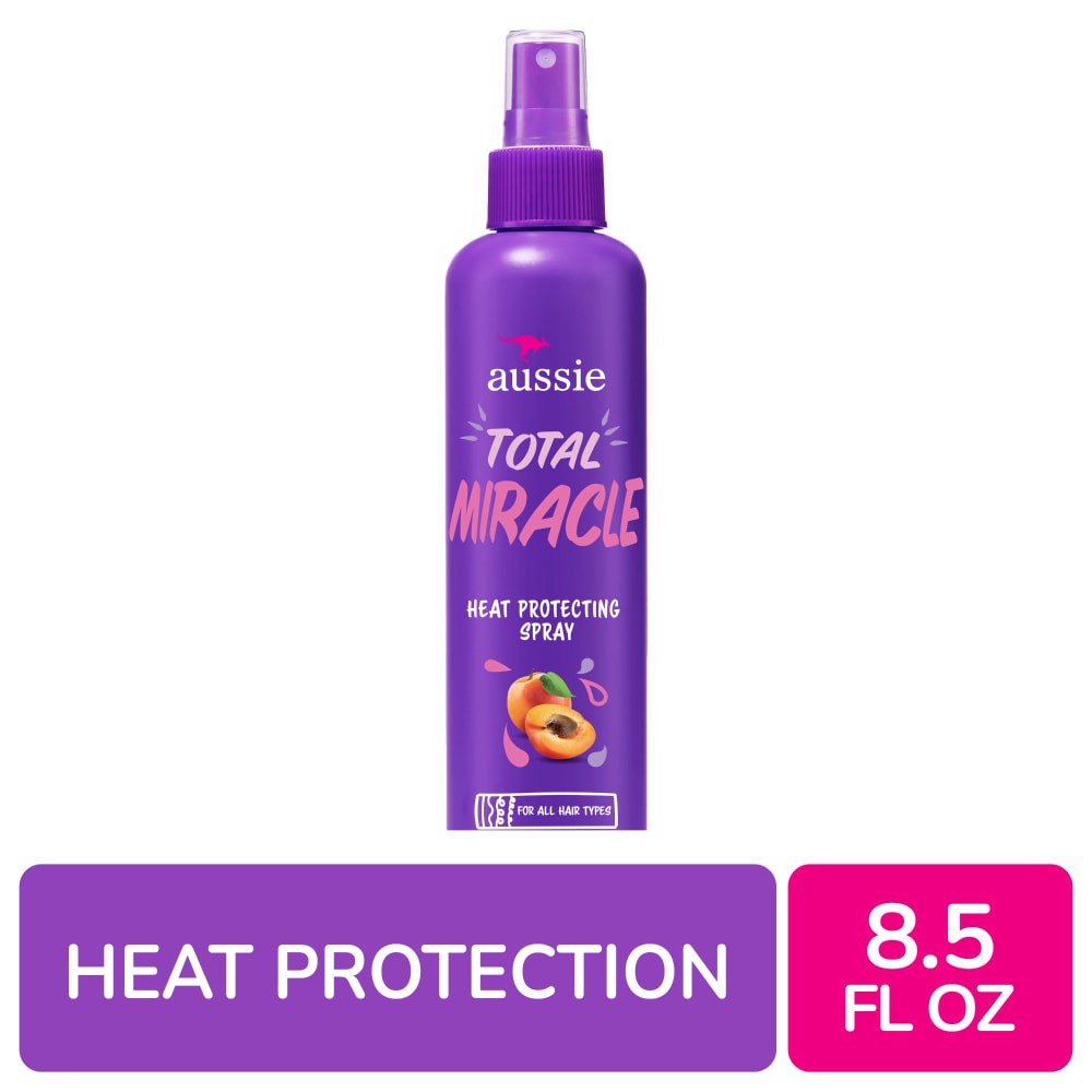 YOU CAN TAKE THE HEAT. Protect your hair from high temperatures with sulfate-free Aussie Total Miracle Heat Protecting Spray. Infused with apricot and Australian macadamia oil, our Heat Protecting Spr…