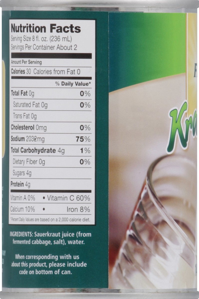 Sauerkraut Juice (from Fermented Cabbage, Salt), Water.