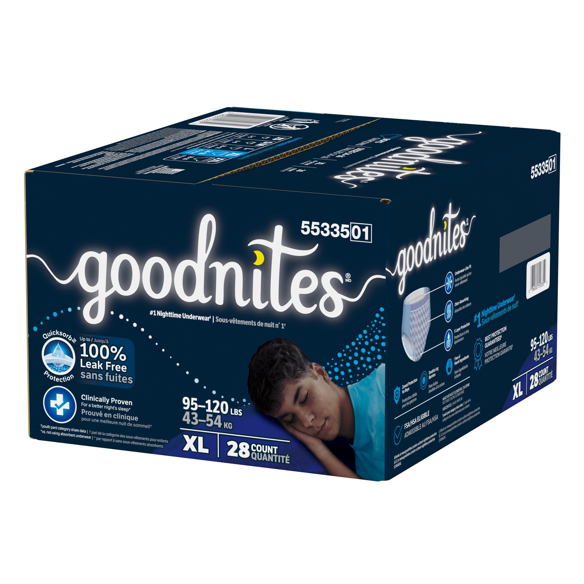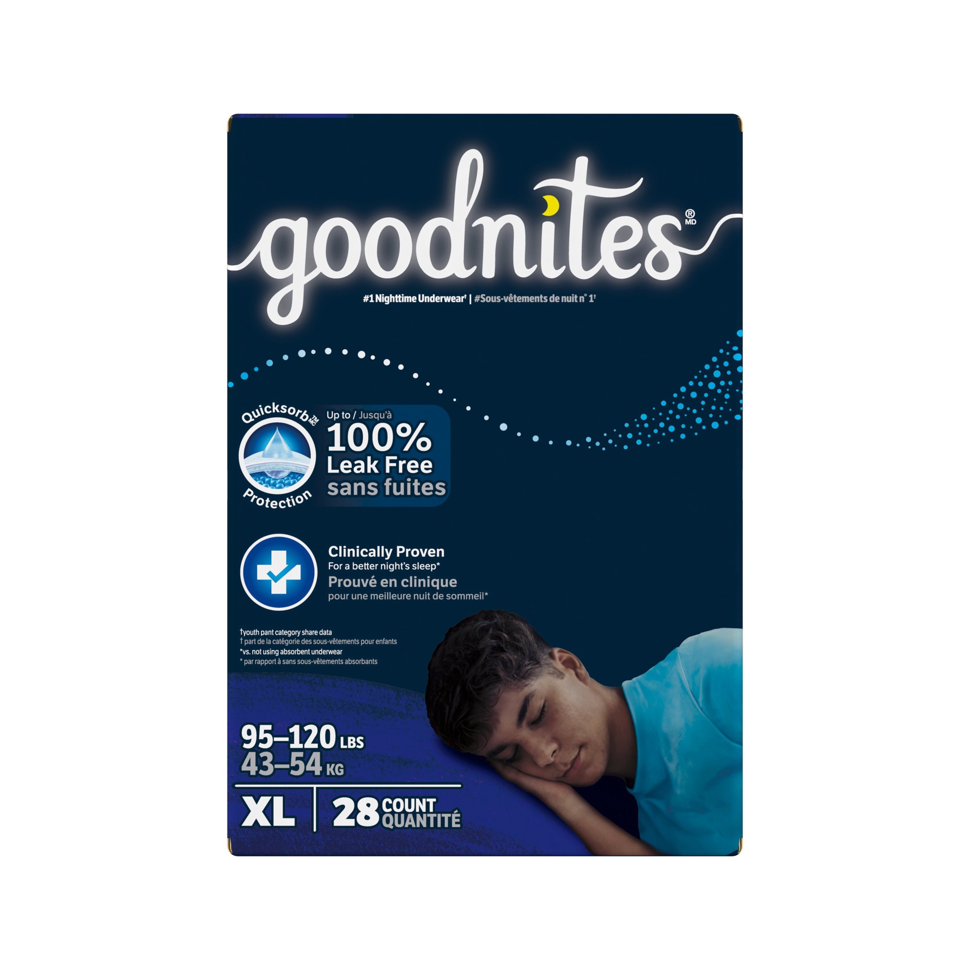 Help your kids wake up dry with Goodnites Nighttime Underwear, the #1 nighttime underwear,* now available in a new XXL size! These nighttime underwear are made with Quicksorb Protection for up to 100%…