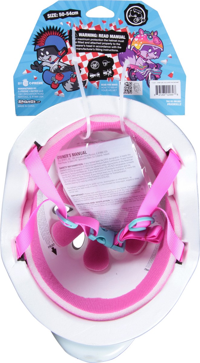 Raskullz Super Unicone Child Helmet is a helmet your child will WANT to wear, maybe everywhere Super vibrant, super cute. Ages 58 years.