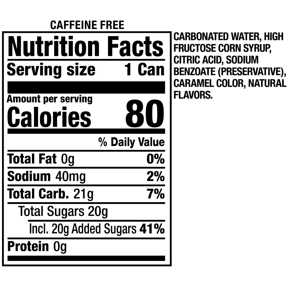 Carbonate Water, High Fructose Corn Syrup, Citric Acid, Sodium Benzoate (Preservative), Caramel Color, Natural Flavors.