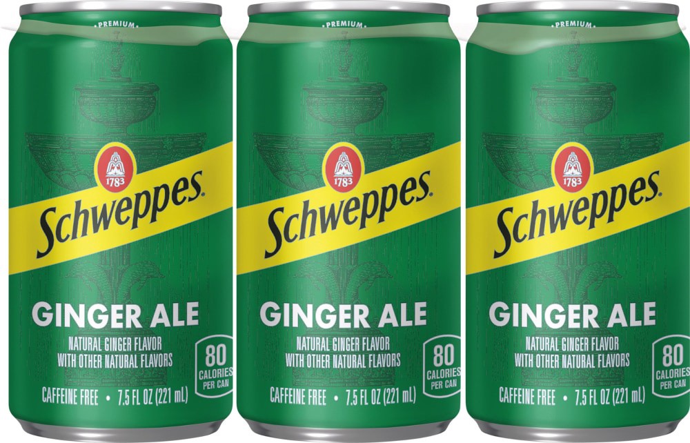 Schweppes Ginger Ale Soda, 7.5 fl oz cans, 6 pack