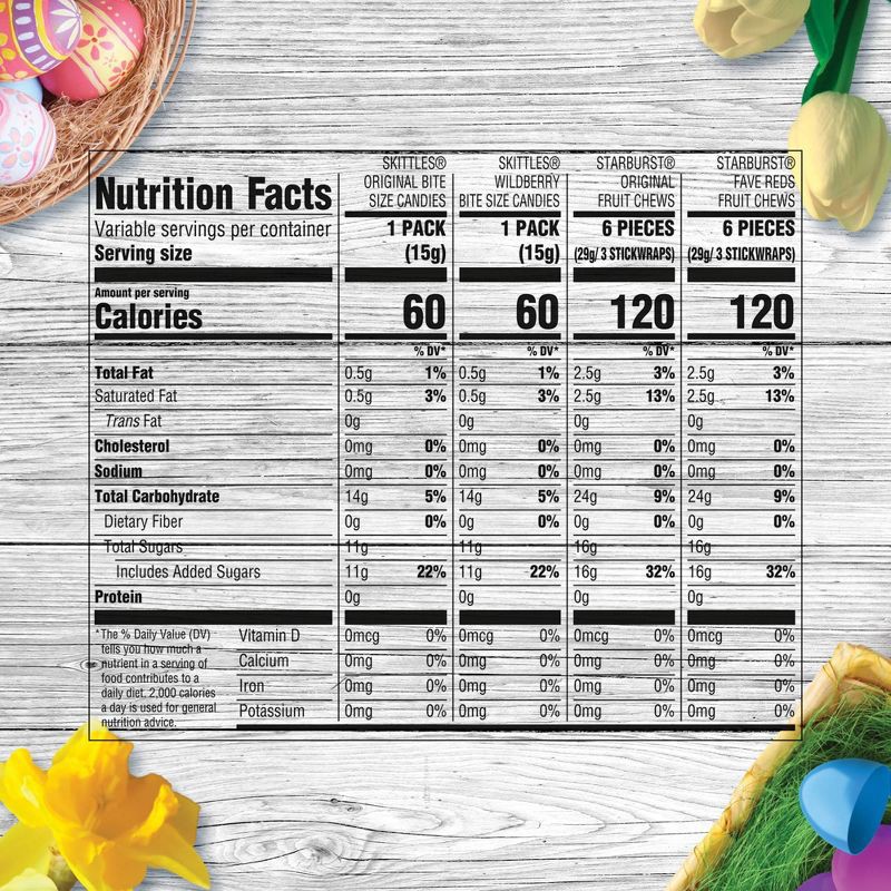 - SKITTLES Original, SKITTLES Wild Berry, STARBURST Original & STARBURST FaveReds fruit candy are the perfect easter egg fillers egg hunts or baskets