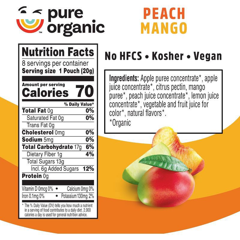 Apple Puree Concentrate*, Apple Juice Concentrate*, Citrus Pectin, Mango Puree*, Peach Juice Concentrate*, Lemon Juice Concentrate*, Vegetable and Fruit Juice for Color*, Natural Flavors*. * Organic.
