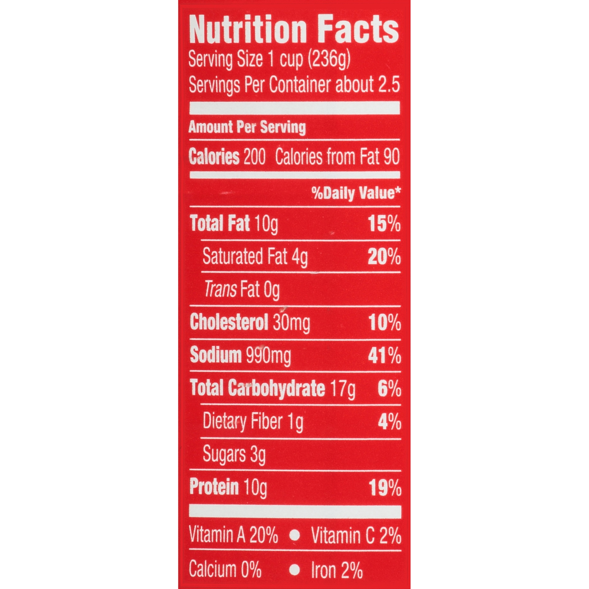 Beef Stock, Beef, Potatoes, Carrots, Contains 2% or Less of Beef Fat, Corn Flour, Textured Vegetable Protein (Soy Flour, Caramel Color), Salt, Tomato Paste, Modified Cornstarch, Potato Starch, Mushroo…