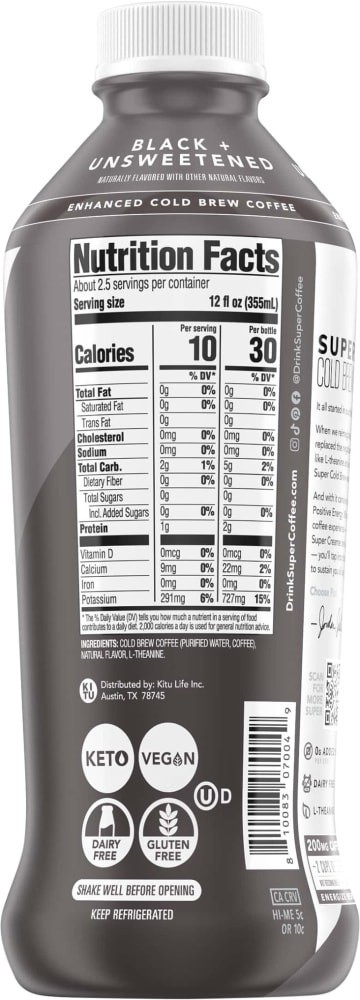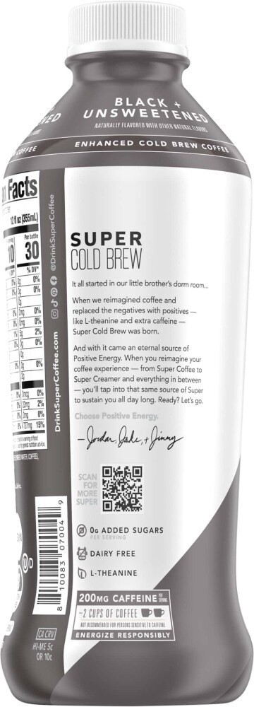 Super Coffee Super Cold Brew Unsweetened Black + Unsweetened Enhanced Cold Brew Coffee - 32 fl oz