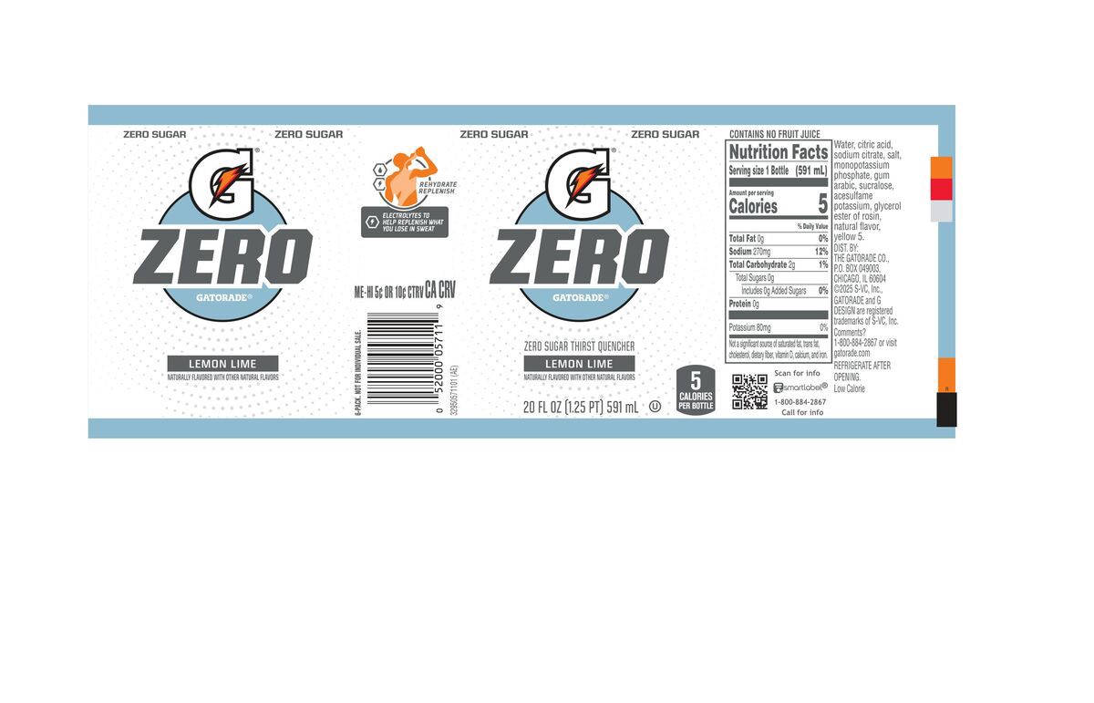 Gatorade Zero Zero Sugar Thirst Quencher Lemon Lime 20 Fl Oz X 6