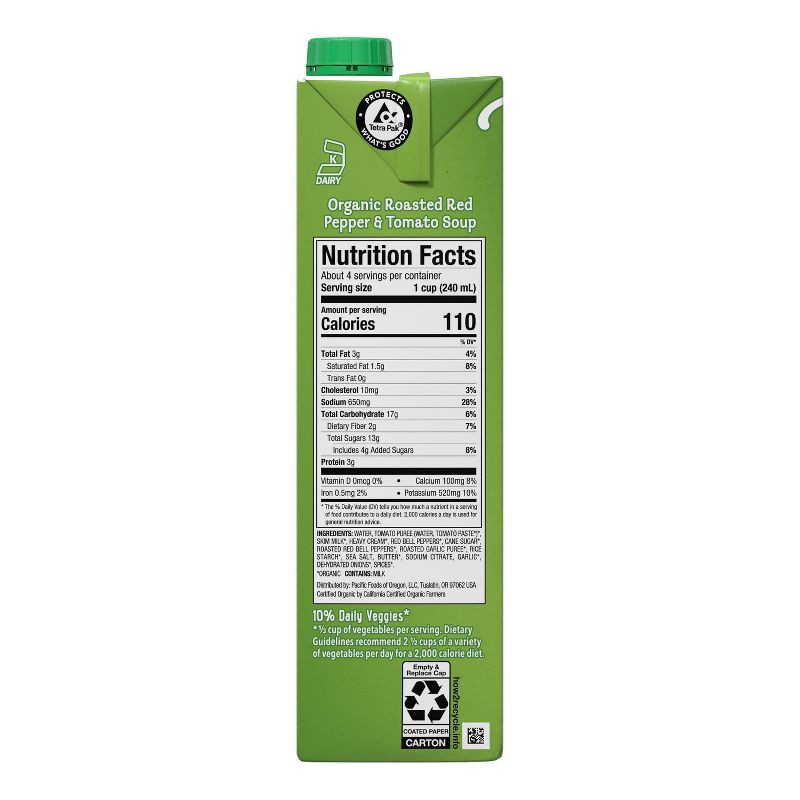 - One (1) 32 oz carton of Pacific Foods Organic Roasted Red Pepper and Tomato Soup