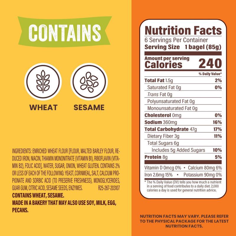 - DELIGHTFUL BREAKFAST SOLUTION: Start your mornings right with the savory charm of onion bagels, providing eight grams of protein per serving
