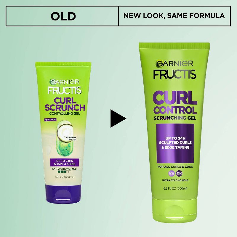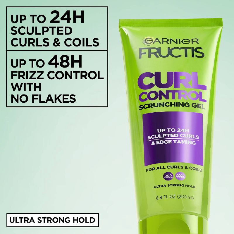 - Control Your Curls: Garnier Fructis Curl Scrunch Controlling gel provides up to 24 HR shape and shine with extra strong hold; Garnier Fructis Curl Scrunch, infused with Coconut Water, creates defined, volume-controlled curls and lasting hold without flyaways and flaky residue