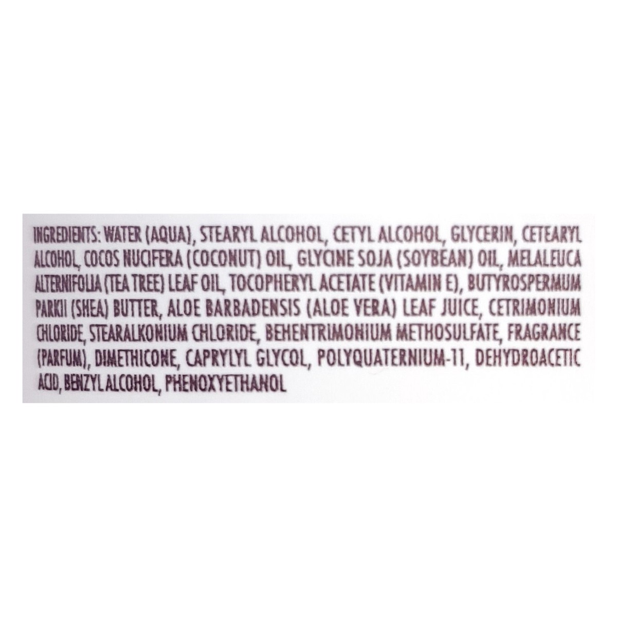 Water (Aqua), Stearyl Alcohol, Cetyl Alcohol, Glycerin, Cetearyl Alcohol, Cocos Nucifera (Coconut) Oil, Glycine Soja (Soybean) 0il, Melaleuca Alternifolia (Tea Tree) Leaf Oil, Tocopheryl Acetate (Vita…