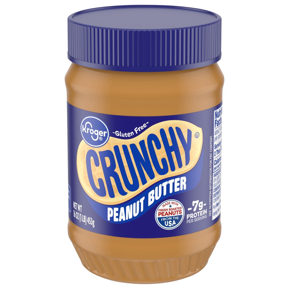 Kroger® Peanut Butter Crunchy is a delicious addition to your pantry. With 7g protein per serving, savor the rich flavor of roasted peanuts. Whether smearing on your morning toast or adding an extra t…