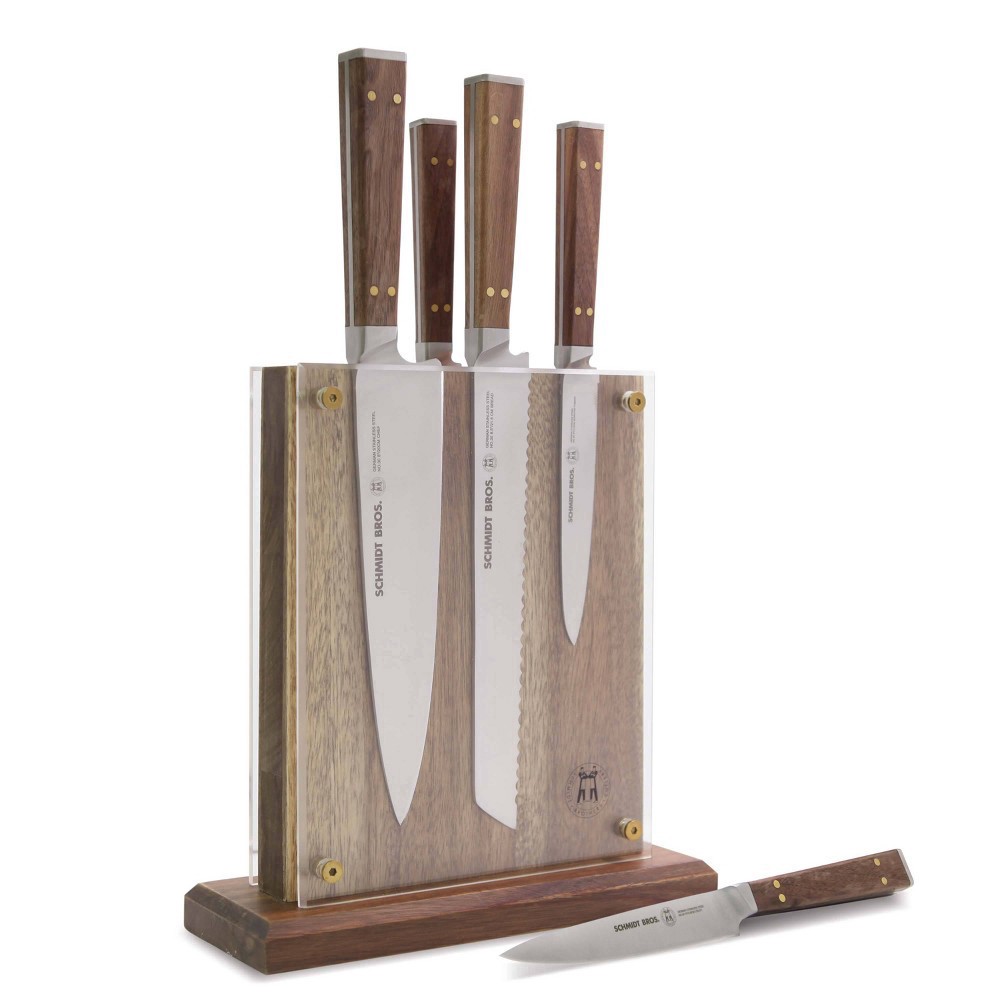 Schmidt Bros Cutlery Cutlery 6pc Walnut and Brass Knife Block Set