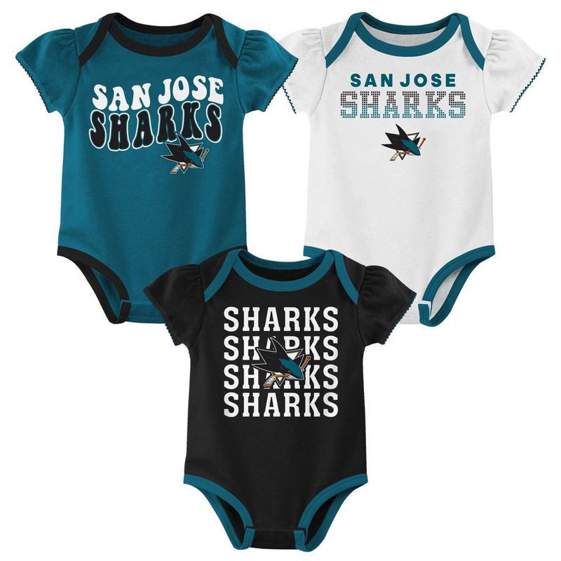 slide 1 of 4, NHL San Jose Sharks Infant Girls' 3pk Bodysuits - 0-3M, 3 ct