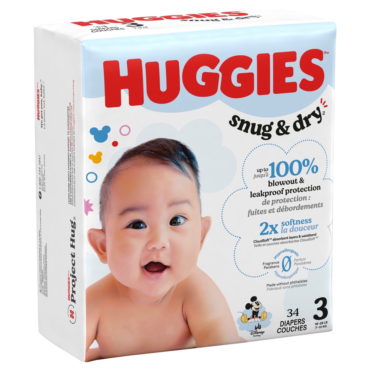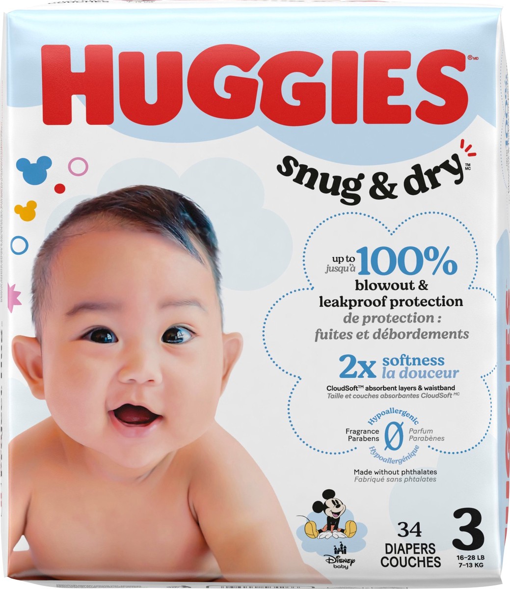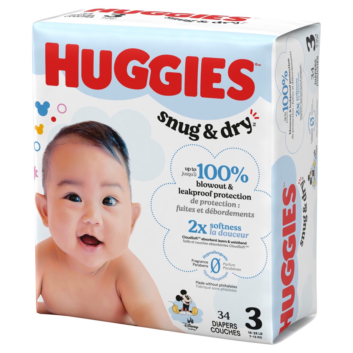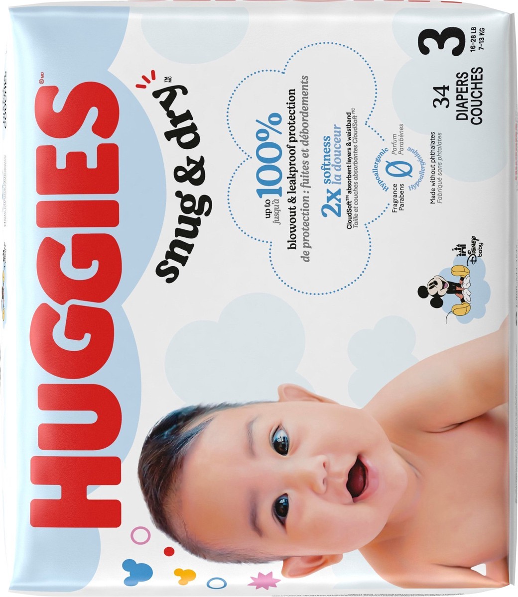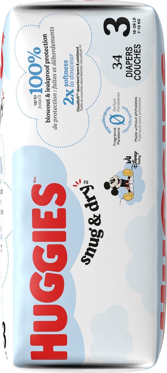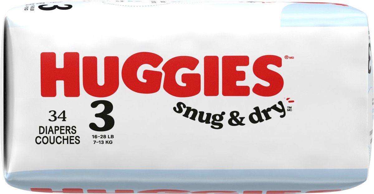 Huggies Snug & Dry Baby Diapers, Size 3 (16-28 Lbs) - 34 Count