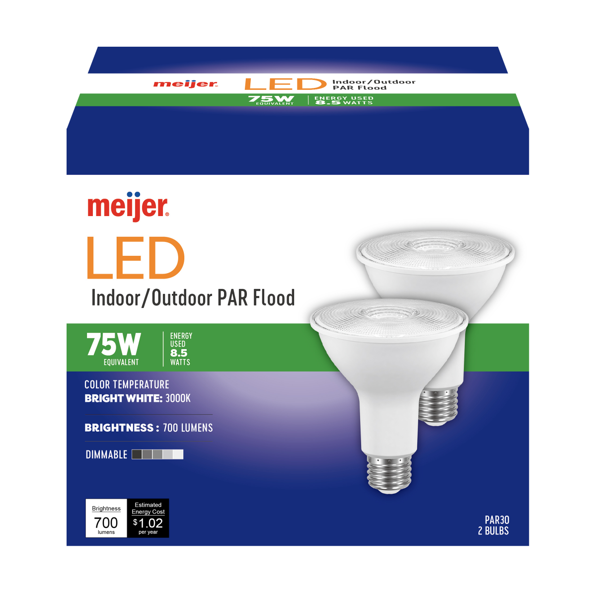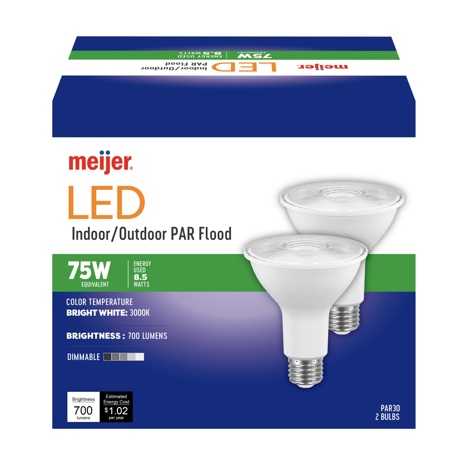 Meijer Dimmable LED Bright White 3000k Indoor/Outdoor PAR Flood Light, 2 ct