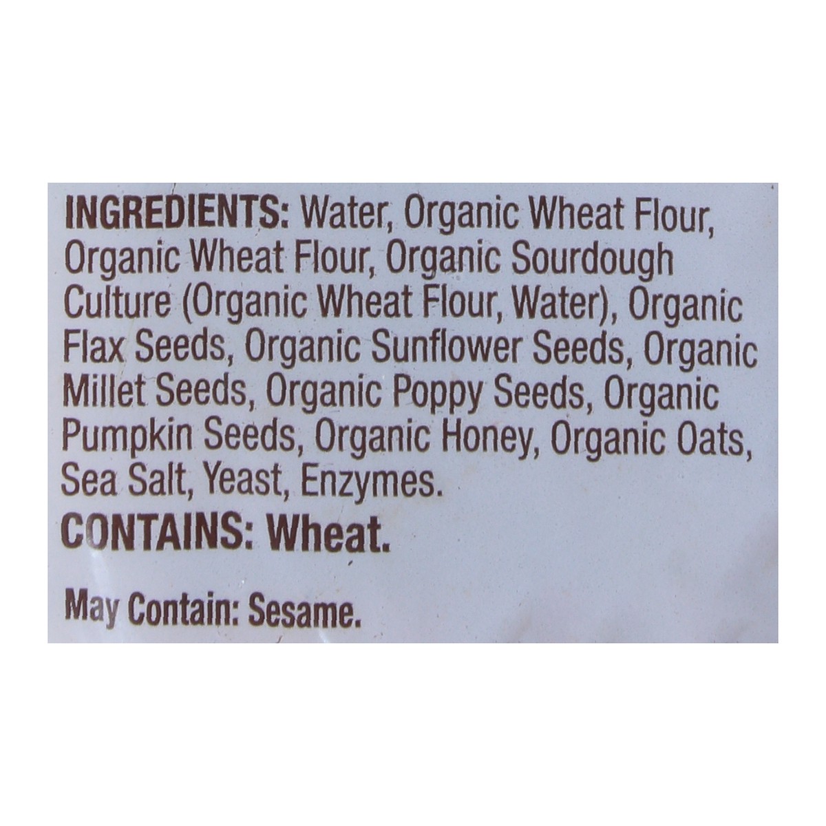 Water, Organic Wheat Flour, Organic Wheat Flour, Organic Sourdough Culture (Organic Wheat Flour, Water), Organic Flax Seeds, Organic Sunflower Seeds, Organic Millet Seeds, Organic Poppy Seeds, Organic…
