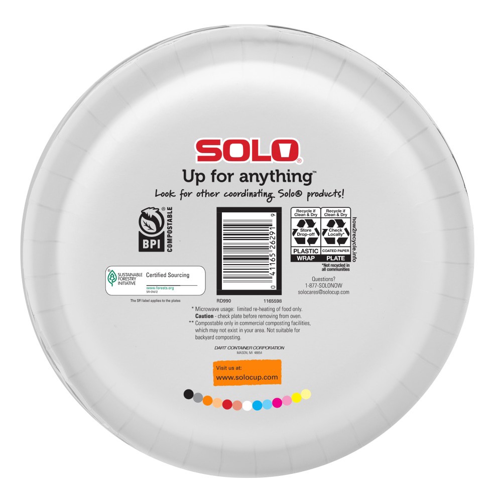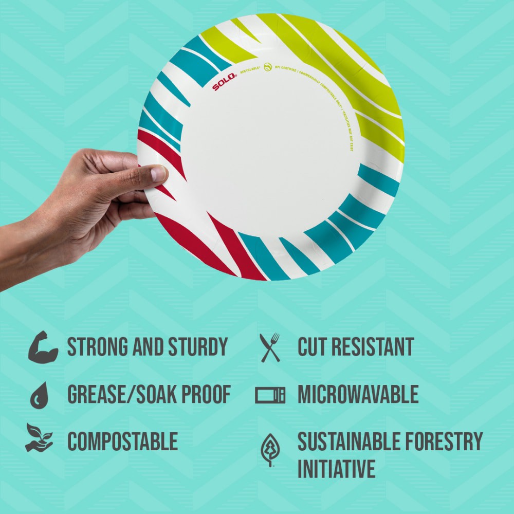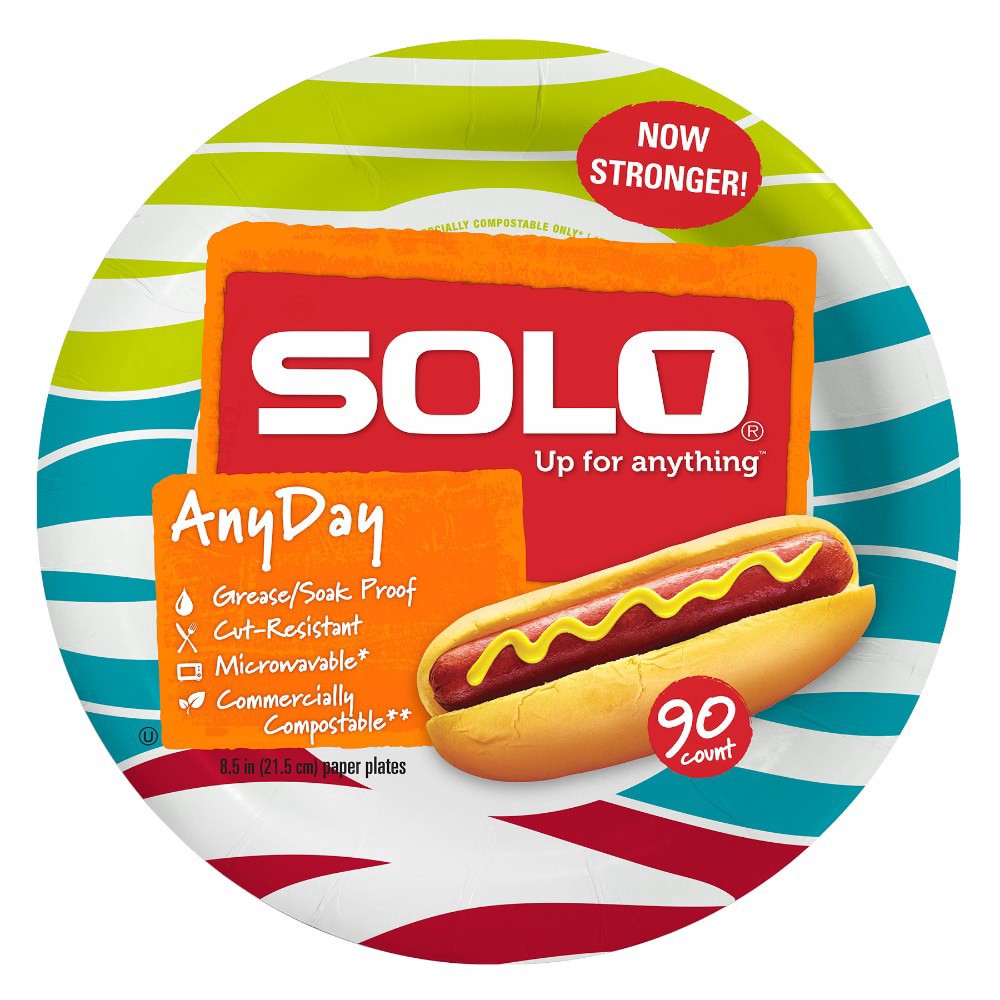 Stylish and dependable, Solo® AnyDay 8.5" paper plates hold up to heavy meals! Non-absorbent and cut-resistant, messes and mishaps are avoided! Perfect for everyday meals, BBQs, picnics and parties. M…