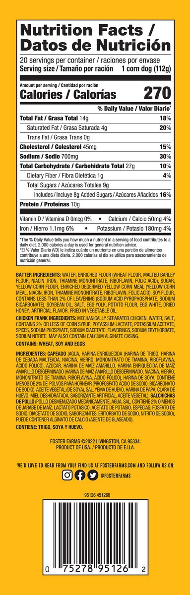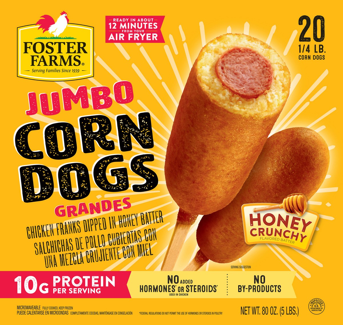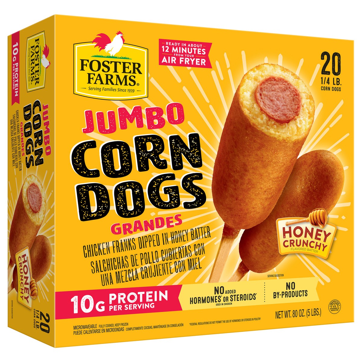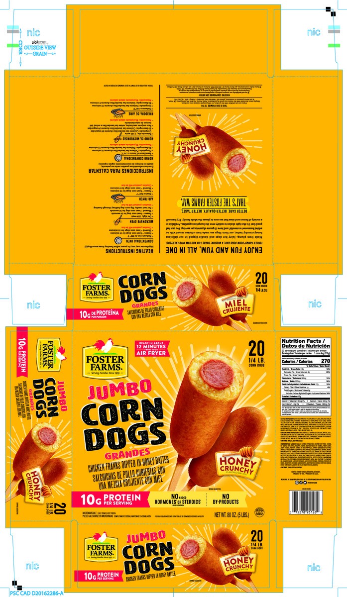 Foster Farms Jumbo Corn Dogs Honey Crunchy 20 ct Box