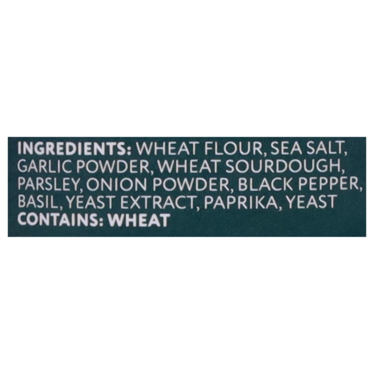 Wheat Flour, Sea Salt, Garlic Powder, Wheat Sourdough, Parsley, Onion Powder, Black Pepper, Basil, Yeast Extract, Paprika, Yeast.
