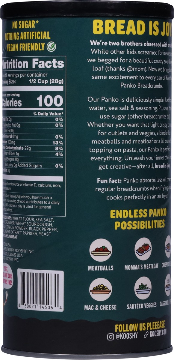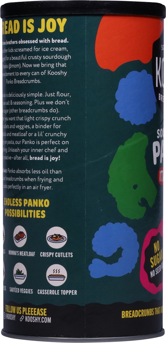 No sugar. Vegan. Vegan friendly. Non-GMO Project verified. nongmoproject.org. No enrich flour. Breadcrumbs that aren't crummy. Bread is Joy: We're two brothers obsessed with bread. While other kids sc…