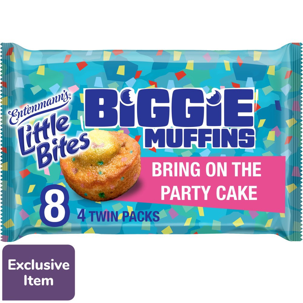 Entenmann's Little Bites Bring On The Party Cake Biggie Muffins, 4 twin packs, Cake and Sprinkles Muffins, 9.5 oz Tray