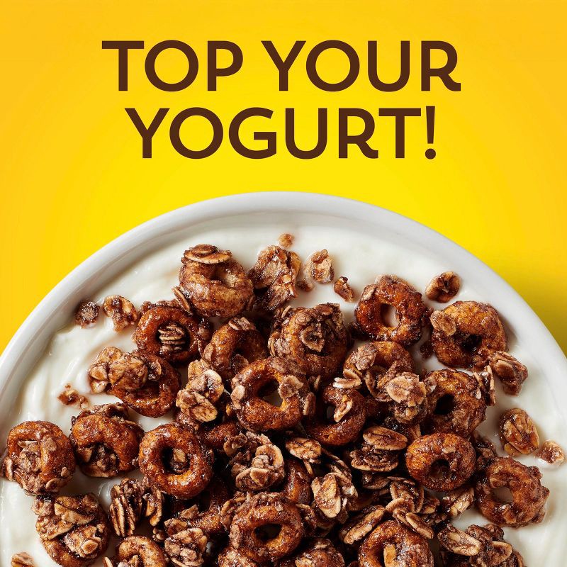 - CRUNCHY GRANOLA: The name you know and love, Cheerios, brings you chocolatey taste in a delicious granola; Multigrain Os and granola clusters with flavor and crunch the whole family will enjoy