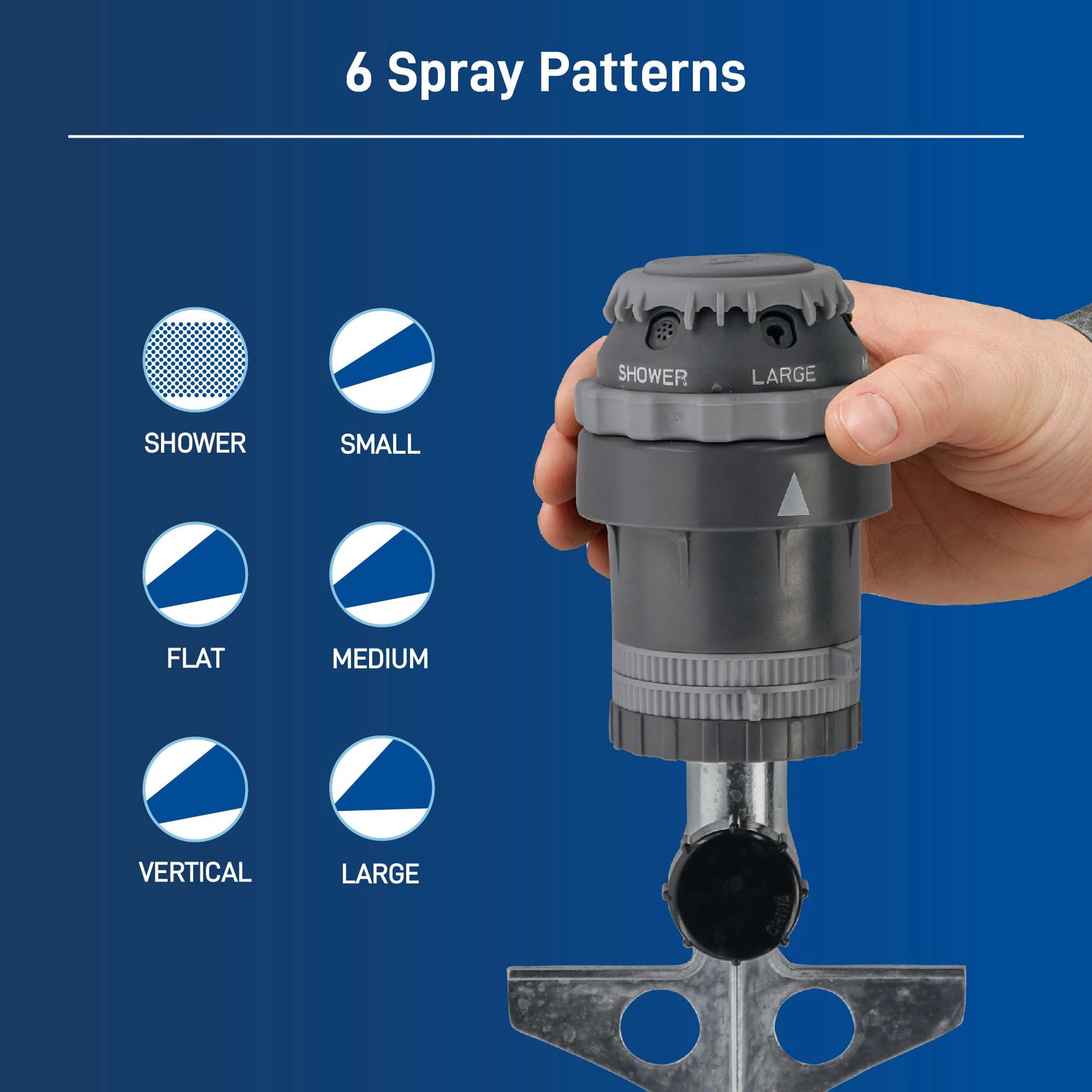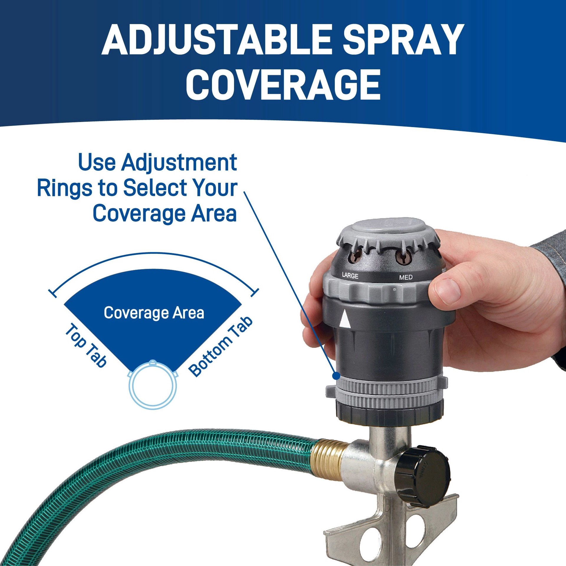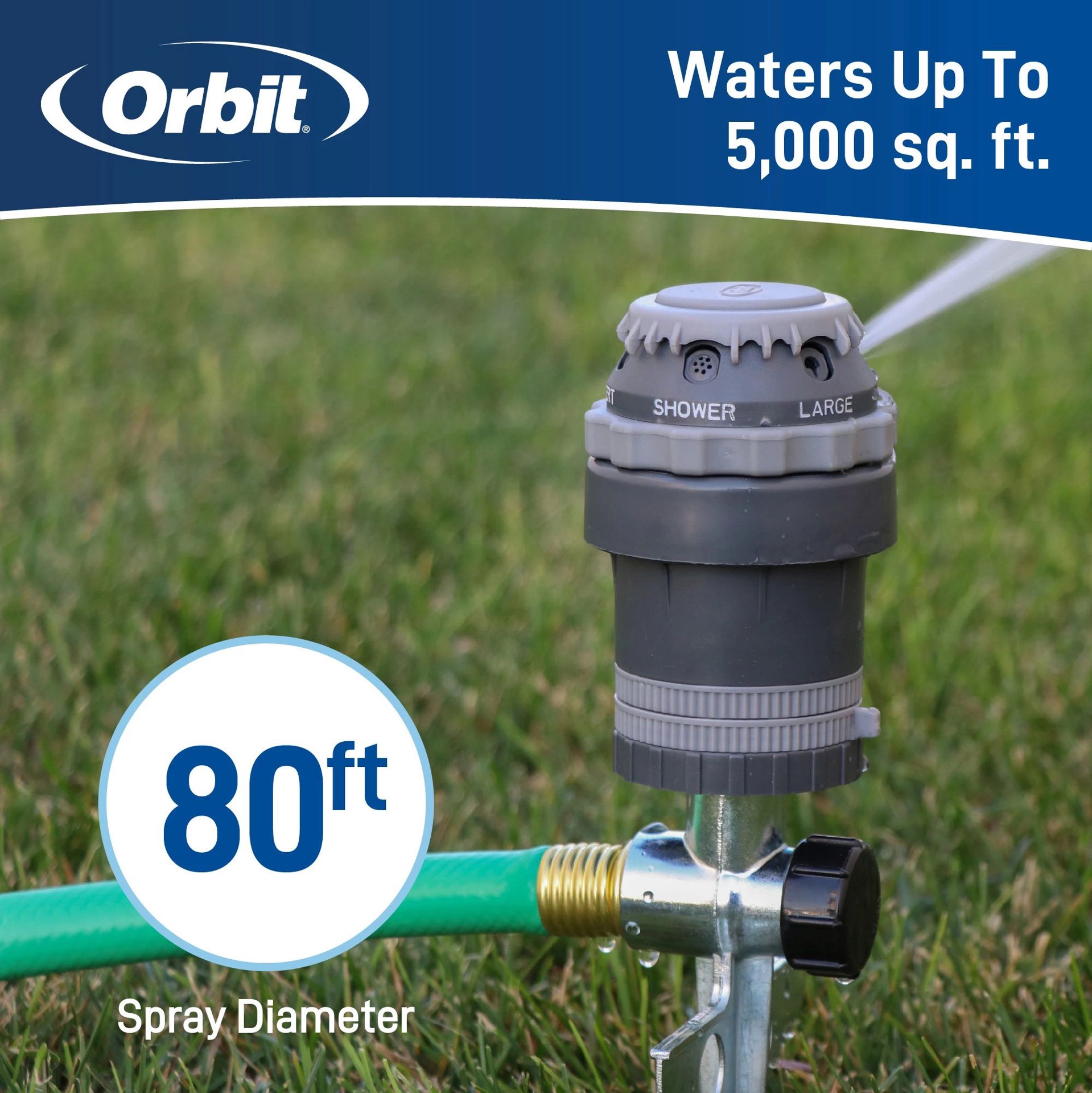 Coverage up to 5000-sq ft (80-ft diameter). 6 versatile spray patterns for watering close-up or far away. Adjusts from part circle to full-circle coverage as easy-adjust tabs make it simple. Whisper-q…