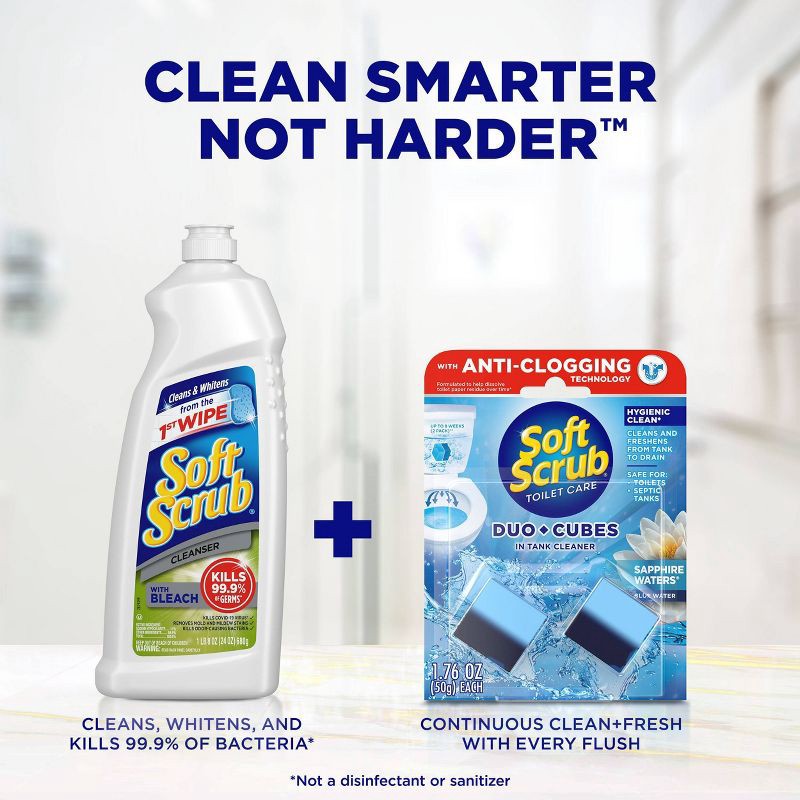 Keep your toilet looking and smelling clean between regular cleanings with Soft Scrub DuoCubes. These easy-to-use, in-tank cubes continuously clean and freshen your toilet with every flush. Just drop …