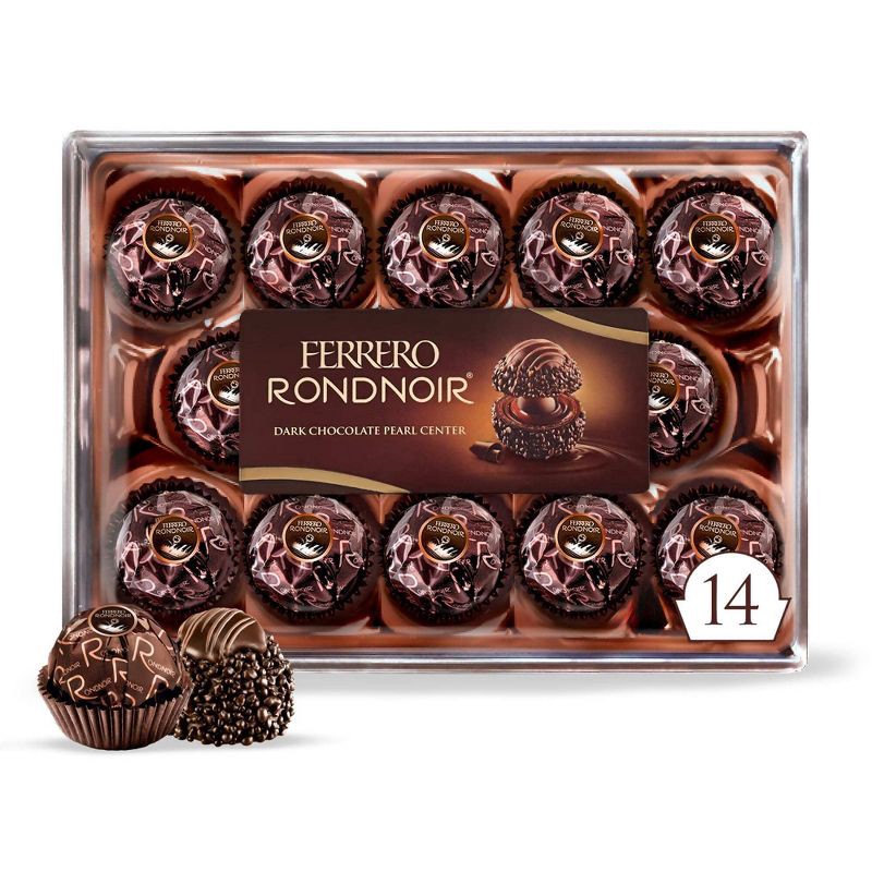 - GOURMET CHOCOLATE GIFT BOX: Share the indulgent taste of Ferrero Rondnoir with this 14-count box of individually wrapped chocolate for gifting