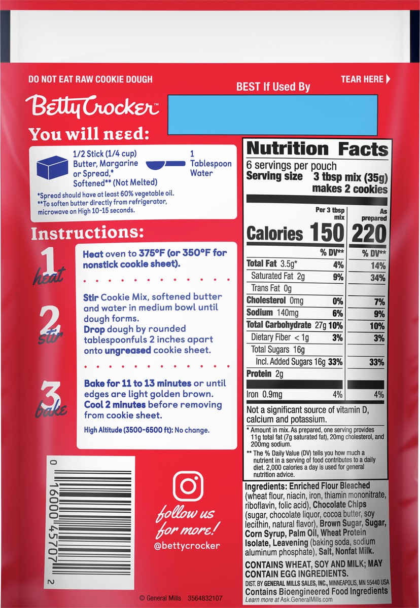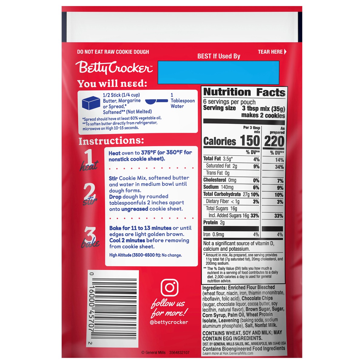Betty Crocker Chocolate Chip Cookie Mix, Makes (12) 2-inch Cookies, 7.5 oz.