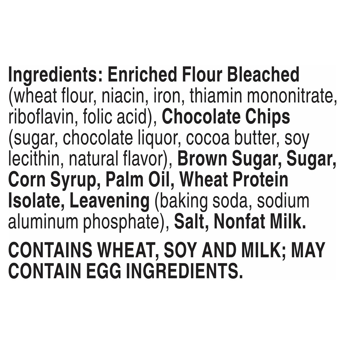 Enriched Flour Bleached (Wheat Flour, Niacin, Iron, Thiamin Mononitrate, Riboflavin, Folic Acid), Brown Sugar, Chocolate Chips (Sugar, Chocolate Liquor, Cocoa Butter, Soy Lecithin, Natural Flavor), Su…