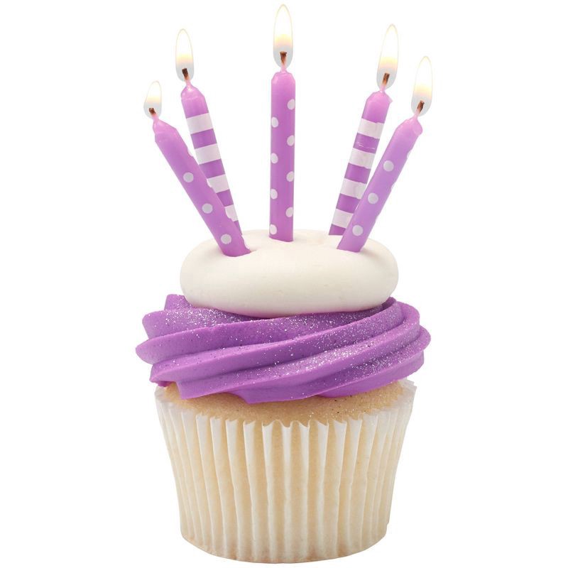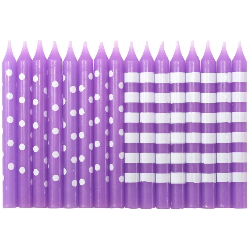 Bakery Crafts 2.5" Candles Stripes & Dots Purple - 16ct