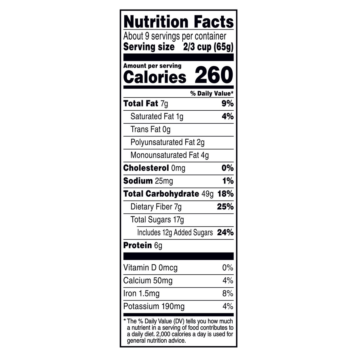 INGREDIENTS: Whole Grain Oats, Whole Grain Wheat, Vegetable Oil (Canola Oil And/Or Soybean Oil), Almonds, Dried Apples, Sugar, Inulin, Whey, Dried Cranberries, Nonfat Dry Milk, Glycerin, Whey Protein …