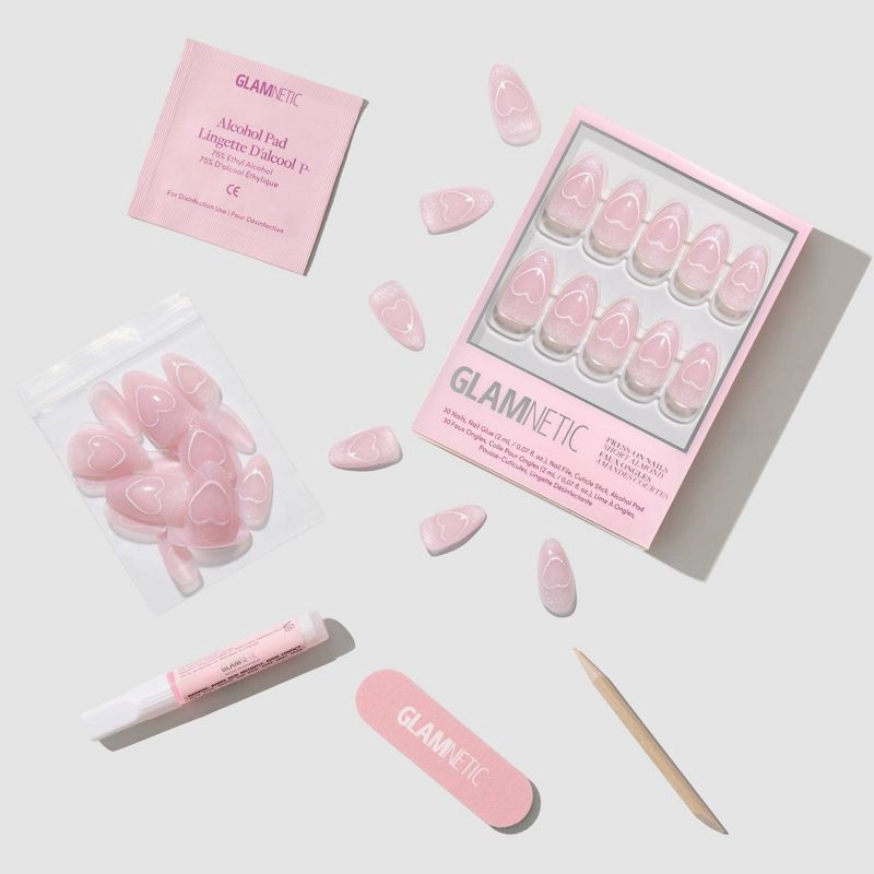 Glamnetics Soulmate Energy Fake Nails: Almond Shape, 30 Pieces, Velvet Finish