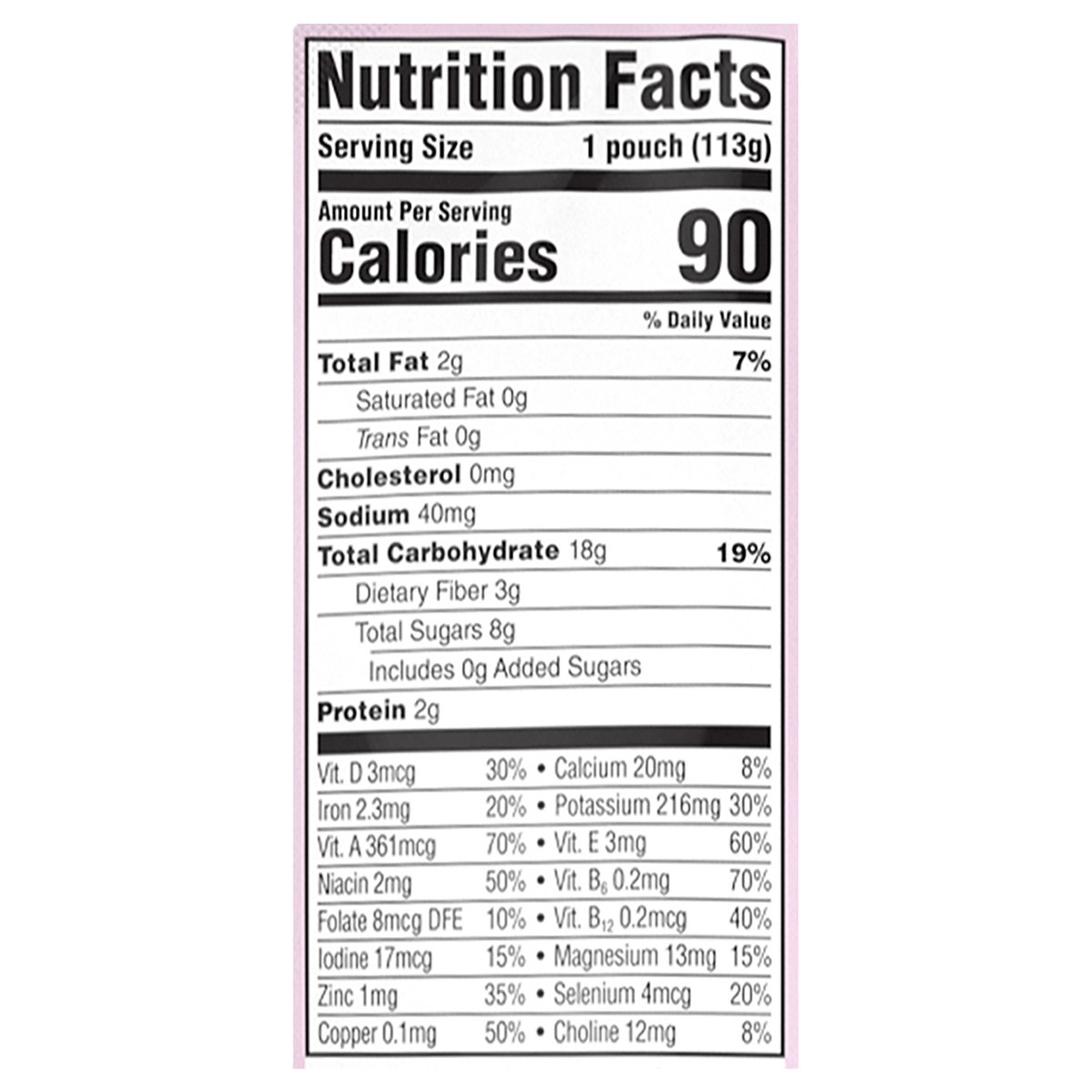 Organic Sweet Potatoes, Organic Peaches, Organic Mangos, Organic Carrots, Organic Vegetable Oil (Contains One or More of the Following: Organic Olive Oil, Organic Sunflower Oil), Organic Nutrient Blen…