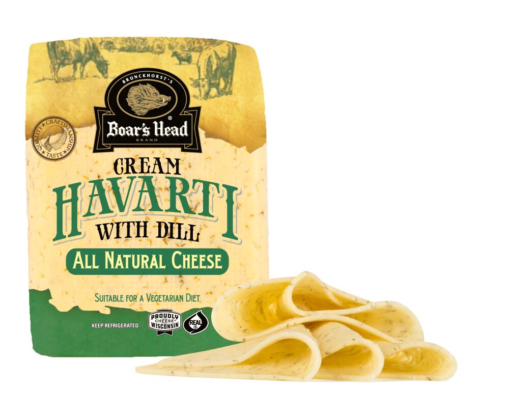 A double crème classic made in the traditional Danish style. Boar's Head® Cream Havarti with Dill is a Wisconsin-made cheese that has an incredibly creamy texture with a rich buttery taste and the del…