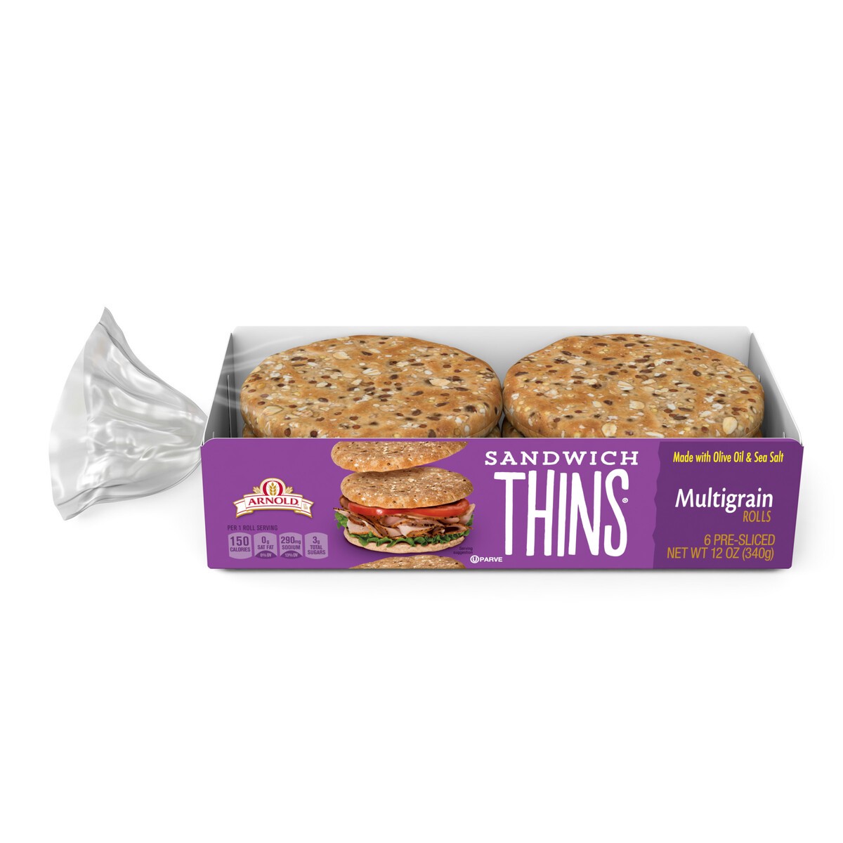 Arnold Multigrain Sandwich Thins Rolls are crafted with pride and baked with premium ingredients like olive oil and sea salt, so each bite is now more satisfying and delicious than ever. Free from art…