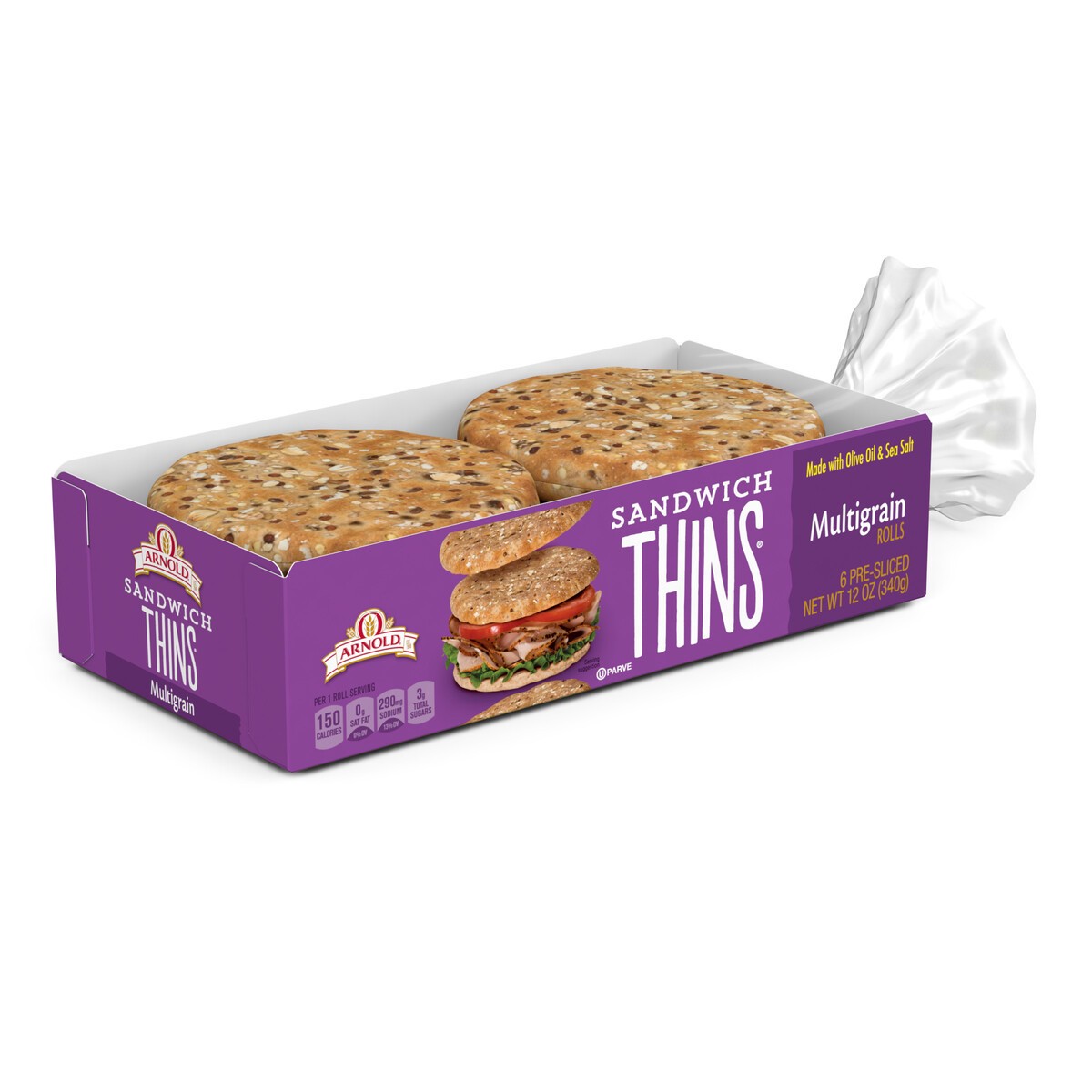 Arnold Multigrain Sandwich Thins Rolls are crafted with pride and baked with premium ingredients like olive oil and sea salt, so each bite is now more satisfying and delicious than ever. Free from art…
