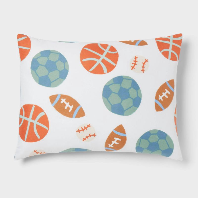 Keep your kid cozy and comfortable with this 4-Piece Sports Value Bedding Set from Pillowfort™. This set includes a sham pillow, a football-shaped decorative pillow, a throw blanket with pompoms at th…