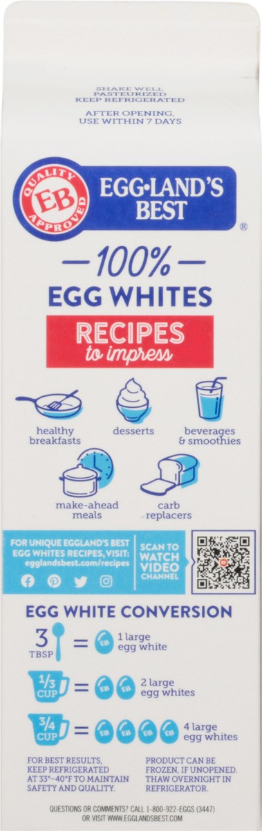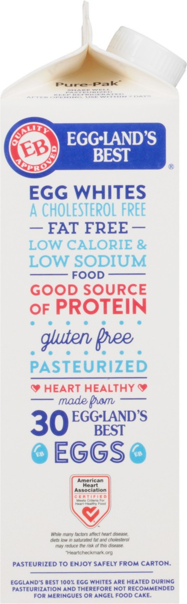 Healthy & delicious. Pasteurized to enjoy safely from carton. Eggland's Best 100% Egg Whites are heated during pasteurization and therefore not recommended for meringues or angel food cake. Recyclable…