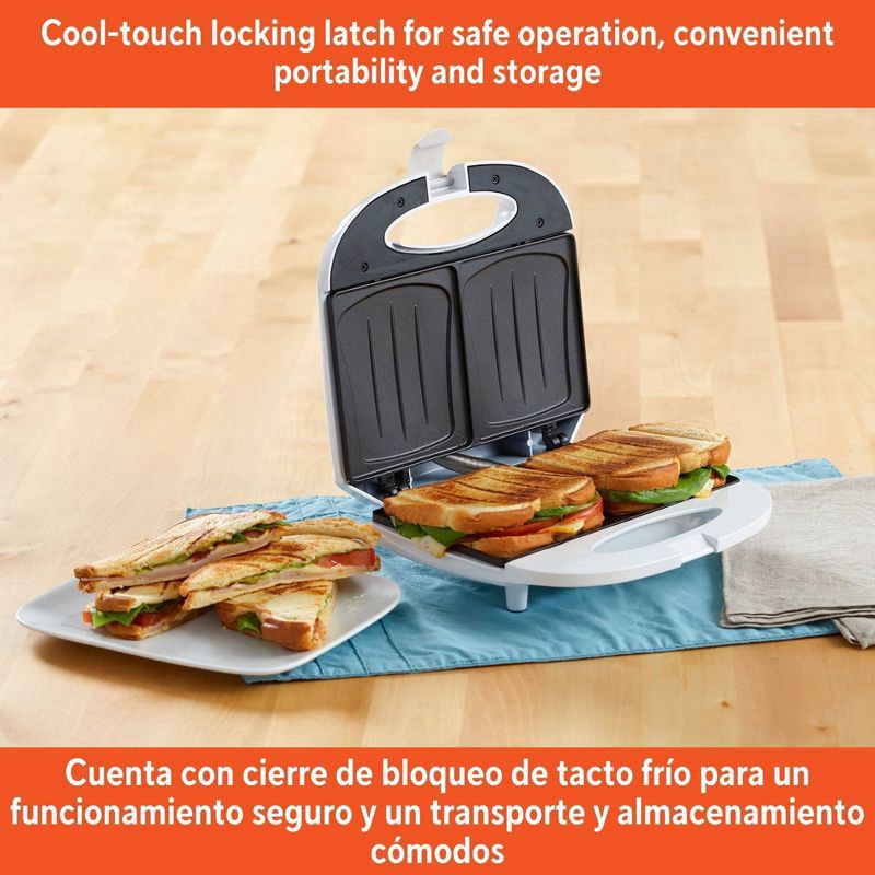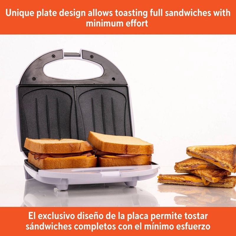 IMUSA 2 Slot Electric Sandwich Maker: Nonstick Griddle, Locking Lid, 750W, White, Grilled Cheese & Sandwich Toaster
