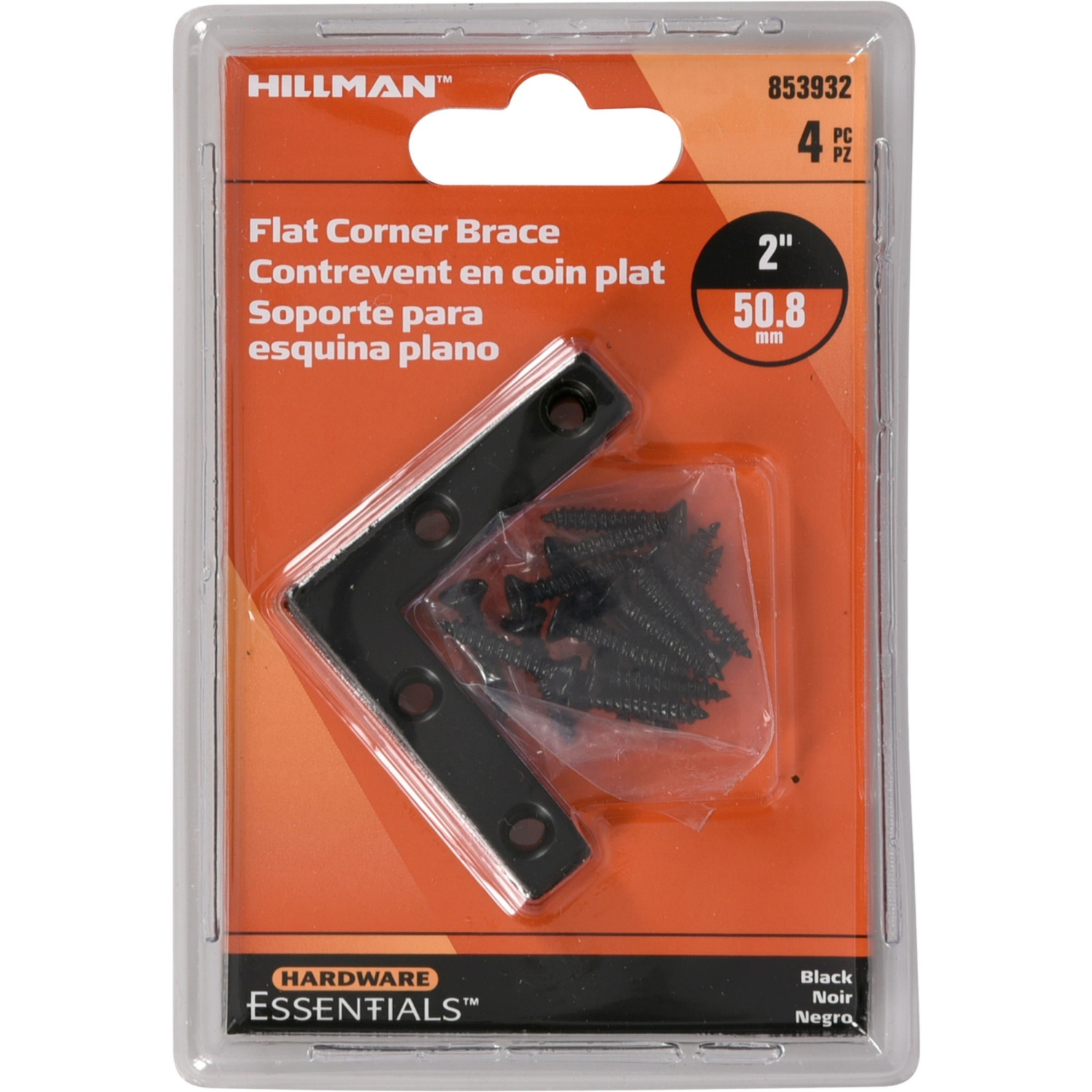slide 1 of 1, Hillman Flat Corner Black 2 x 3/8", 1 ct